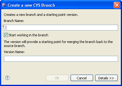 Note: The Version Name is important; you will need this when you want to merge your changes later on. It identifies the point at which the branch was created.